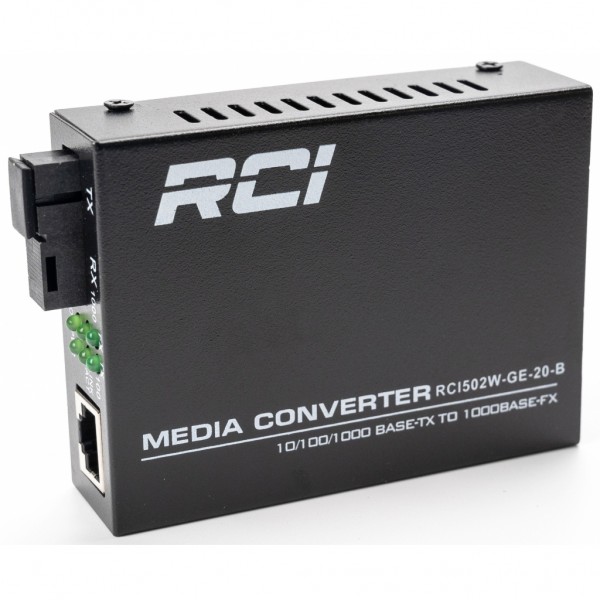 Медіаконвертер RCI 1G, 20km, SC, RJ45, Tx 1550nm standart size metal case (RCI502W-GE-20-B)